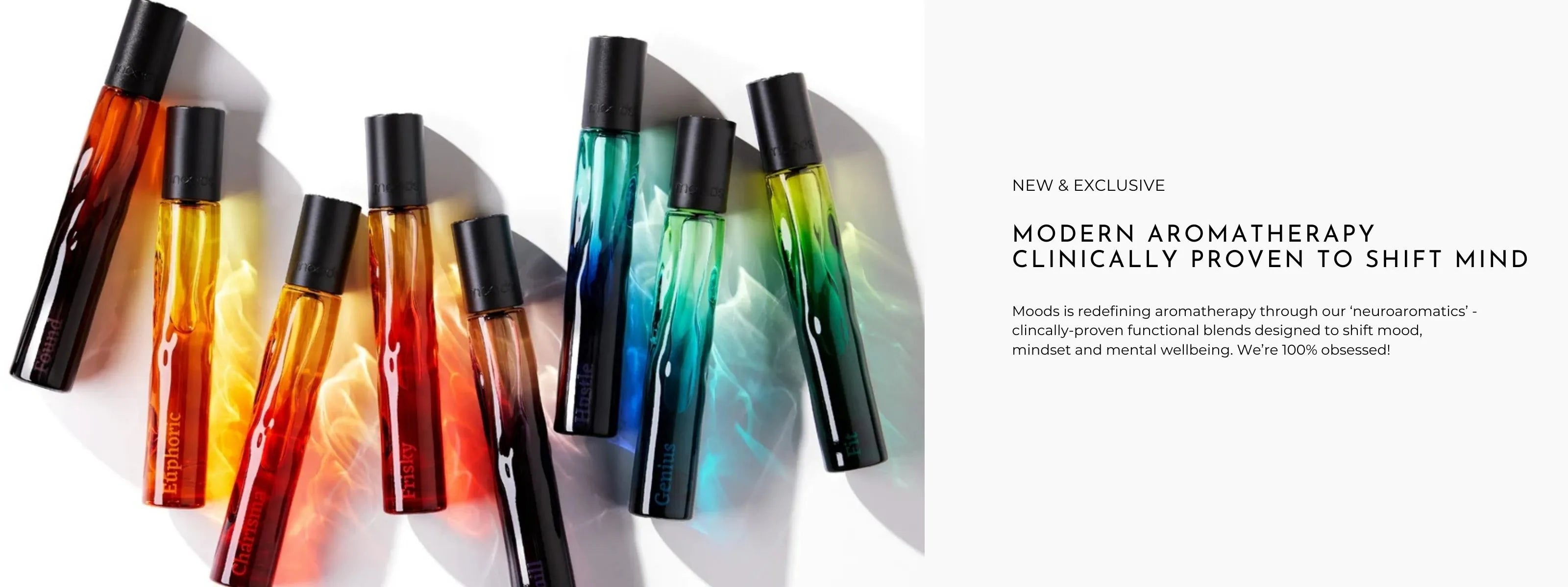 Moods pure essential oils, combined with purpose, supported by data, and designed to fit seamlessly into modern life. No overpromising. No excess. Just simple, effective tools to help shift how you feel when you need it most.