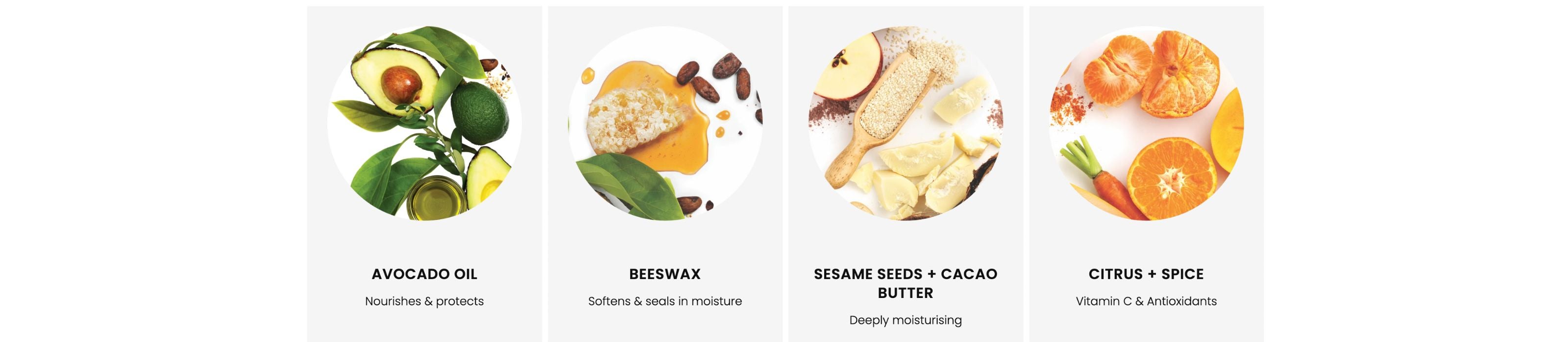 مليء بمضادات الأكسدة الطبيعية والفيتامينات A و C و D و E و B + والأحماض الدهنية الأساسية التي تحافظ على بشرة شفاهنا الرقيقة ممتلئة ورطبة.