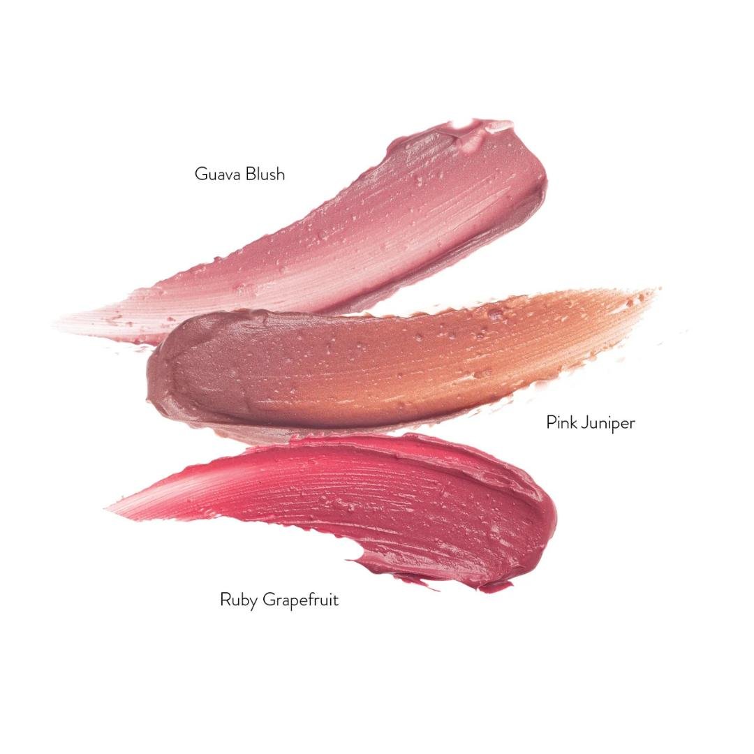 Packed with natural antioxidants, vitamins A, C, D, E, and B+, plus essential fatty acids, this trio is designed to care for the delicate skin of your lips. Each shade is created from unique blends of fruit extracts, plant oils, and botanicals—from grapefruit and berry to avocado and olive leaf—offering subtle color with a dewy finish.