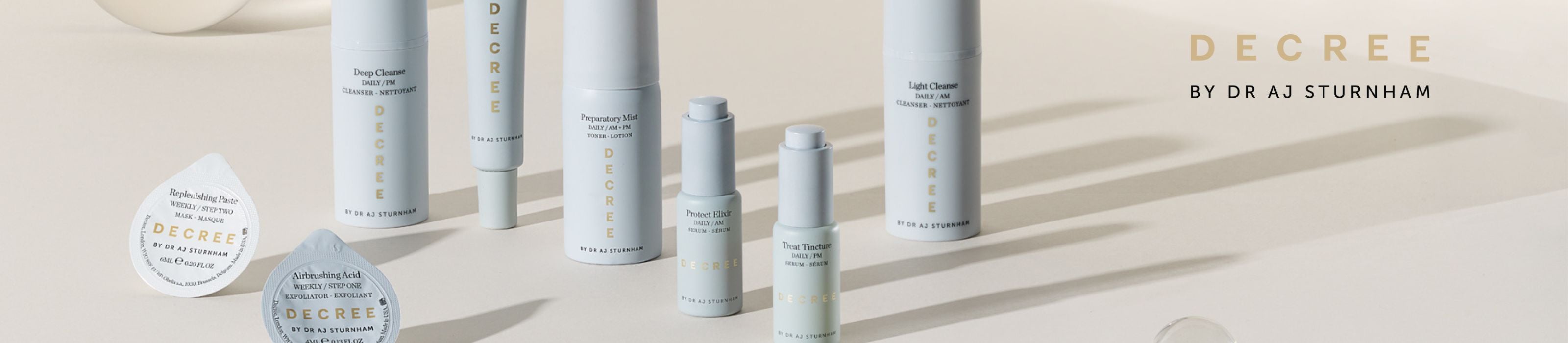 Decree is a concise range of multi-tasking products designed by Dr. Anita Sturnham to support skin of any age, type, or concern. Rooted in over 20 years of treating real skin in her London clinic, the range brings science-backed minimalism to your daily routine—with everything you need to balance, strengthen, and nourish your skin across a simple but powerful AM, PM, WEEKLY, and SOS regimen.