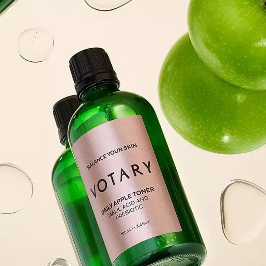 Harnessing the power of natures apple acids and extracts to nourish, balance and rejuvenate our skin. Votary's Daily Apple Toner is boosted with antioxidants, prebiotics and natural AHAs to gently lift away dead skins cells, balance pH and the skins microbiome and boost hydration and resilience.