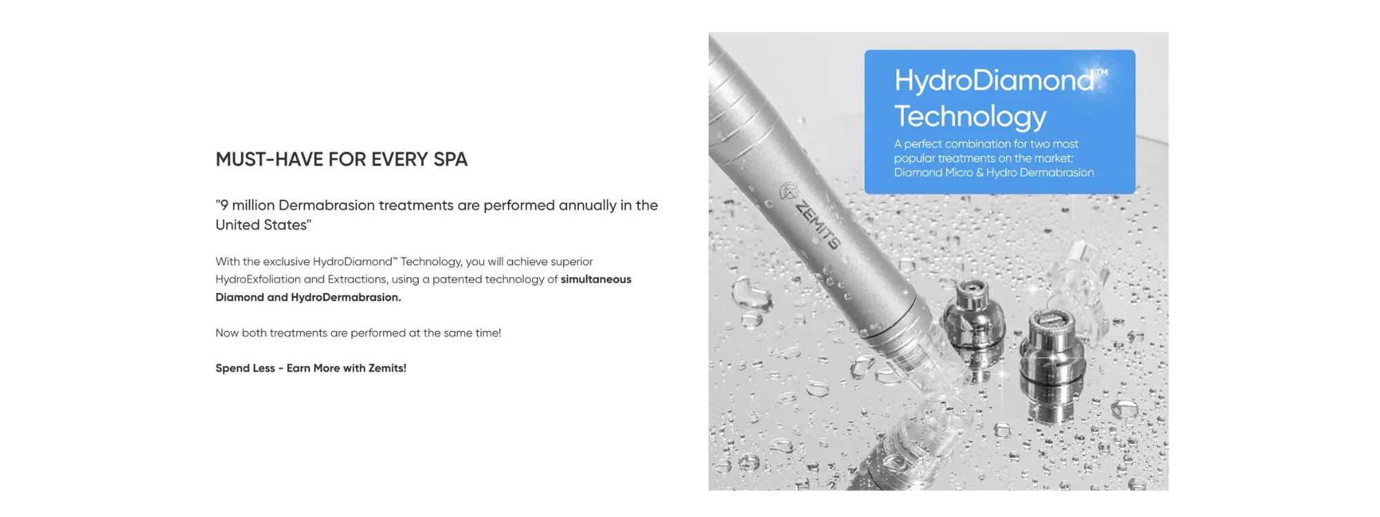 With the exclusive HydroDiamond™ Technology, you will achieve superior HydroExfoliation and Extractions, using a patented technology of simultaneous Diamond and HydroDermabrasion.